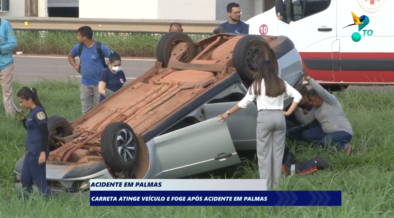 Na tarde de ontem, foi registrado um acidente de trânsito em Palmas, envolvendo um carro de passeio da cor prata. De acordo com informações apuradas no local, uma carreta, que trafegava em alta velocidade, colidiu na parte traseira do veículo, fazendo com que o carro fosse projetado para fora da pista e capotasse.