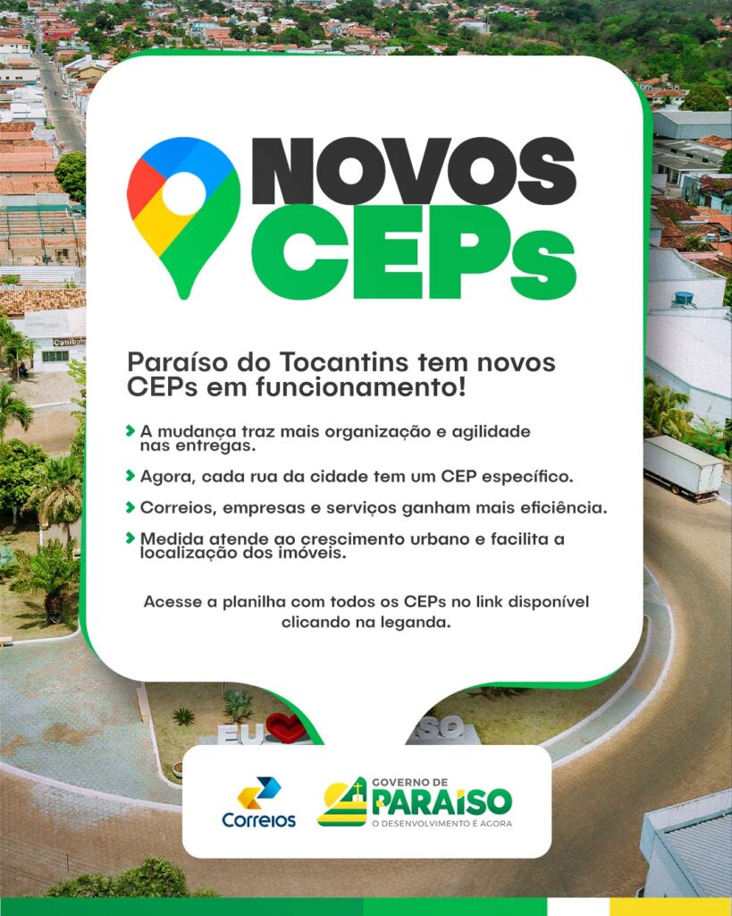 Moradores de Paraíso do Tocantins têm relatado dificuldades para localizar endereços após a substituição do CEP único da cidade por códigos individualizados por logradouro. A mudança integra uma reestruturação nacional realizada pelos Correios e não foi conduzida pela Prefeitura.